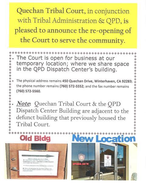 The Quechan Tribal Court offers notary services between the hours of 8:00am-5:00pm. We are closed during the lunch hour of 12:00pm-1:00pm. Preferably call ahead to schedule notary services so that time can be provided/scheduled to assist you.