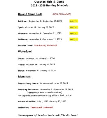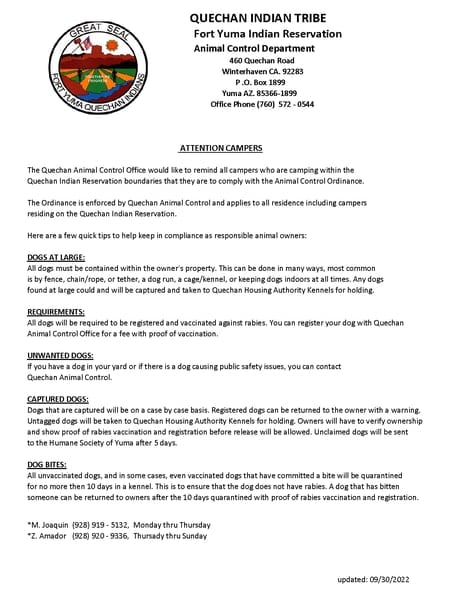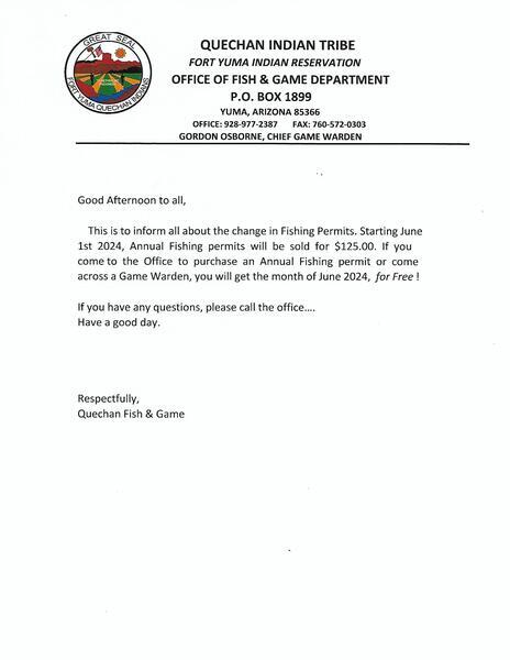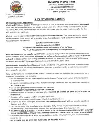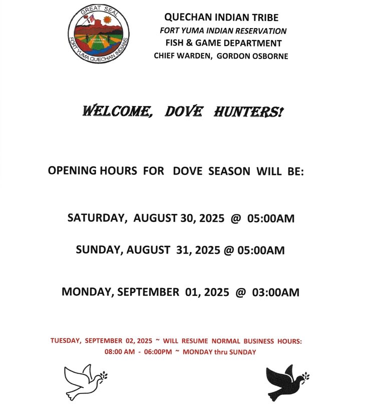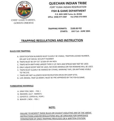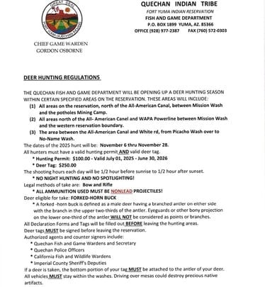 The Quechan Fish and Game Department is a Tribal, State, and Federal Agency. The Department is responsible for 50,000 acres of tribal land.
