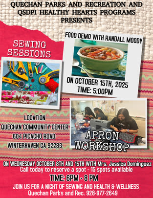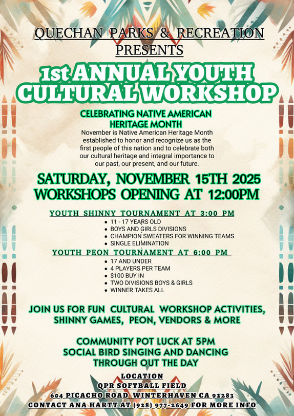 Quechan Parks & Recreation are committed to enriching the lives of our tribal community by preserving and promoting spaces that reflect our cultural pride and values. Through the thoughtful maintenance of Sunrise Park, Fort Yuma Fields, Quechan Community Center, and Rainbow Pool, we provide safe, welcoming, and accessible recreation for all ages and abilities. As our community grows, we remain dedicated to meeting the evolving needs of tribal members while ensuring our grounds and programs are clean, inclusive, and vibrant for current and future generations.