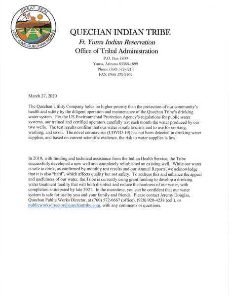 Click here to view the 2020 Quechan Utility Annual Water Quality Report